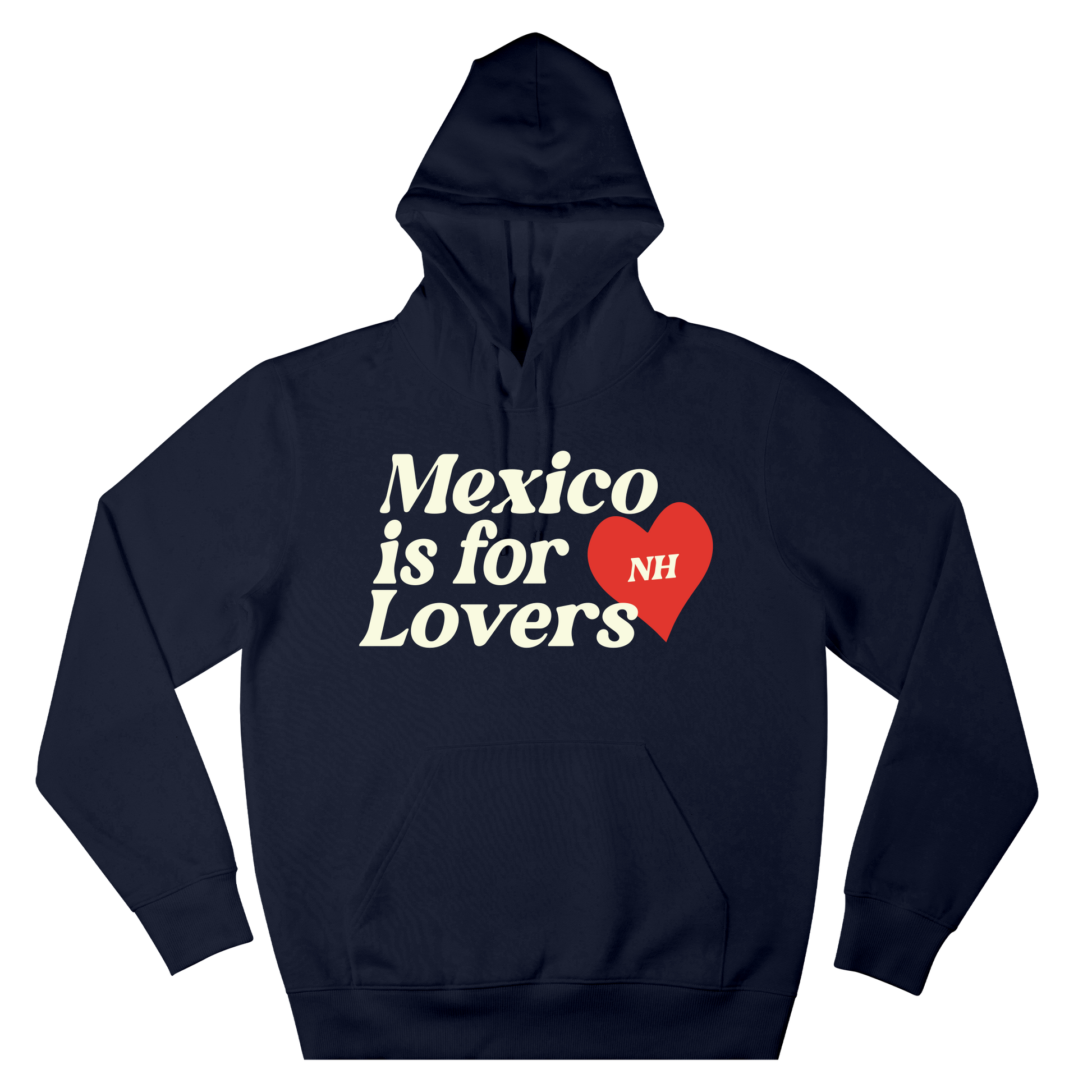 Mexico Is For Lovers Hoodie in navy blue ringspun cotton and polyester.
